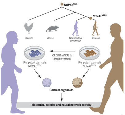 Une étude décrit la création de cerveaux organoides avec des gènes de Néandertal. Une équipe américaine a voulu mieux comprendre l'impact des différences génétiques chez Néandertal et Homo Sapiens. Nos génomes sont globalement similaires mais nous avons 61 gènes différents. Par exemple, les Néandertaliens n'ont qu'une seule paire de bases différente pour le gène NOVA1, un gène important pour le développement du cerveau et du système nerveux. Les chercheurs ont utilisé les ciseaux génétiques CRISPR-CaS9 sur des cellules souches humaines pour modifer ce gène et le rendre archaique. Puis, ils ont cultivé des organoides modernes et néandertaliens. Ces derniers se sont montrés plus petits et leurs cellules se multipliaient plus lentement que les organoides modernes. L'altération d'une seule base peut donc changer tout le développement du cerveau, et la version moderne de NOVA1 a peut-être été un avantage évolutif pour notre espèce. 02/21