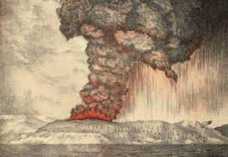 Le tableau "Cri" de Munch, l'artiste décrit qu'il se promenait quand soudain, après le coucher de soleil, le ciel était devenu "rouge sang" rempli de nuages flamboyants soit un spectacle qui l'avait laissé "tremblant de peur"! Des scientifiques ont formulé l'hypothèse selon laquelle le ciel en feu vu et peint par le peintre norvégien aurait été provoqué par les cendres dues à l'explosion du volcan Krakatoa! Cette théorie est contestée par des météorologistes. Affaire à suivre...