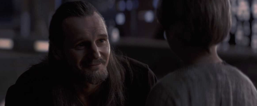Anakin Skywalker to Qui-Gon Jinn (The Phantom menace/La Menace fantôme).