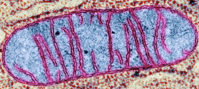 Mitochondria, an organelle devoted to producing energy (ATP) thanks to the exothermic combustion reaction of carbohydrates called "cellular respiration". Glucose is the basic fuel of life and a key ingredient of cells. It oxidizes by this Redox reaction: