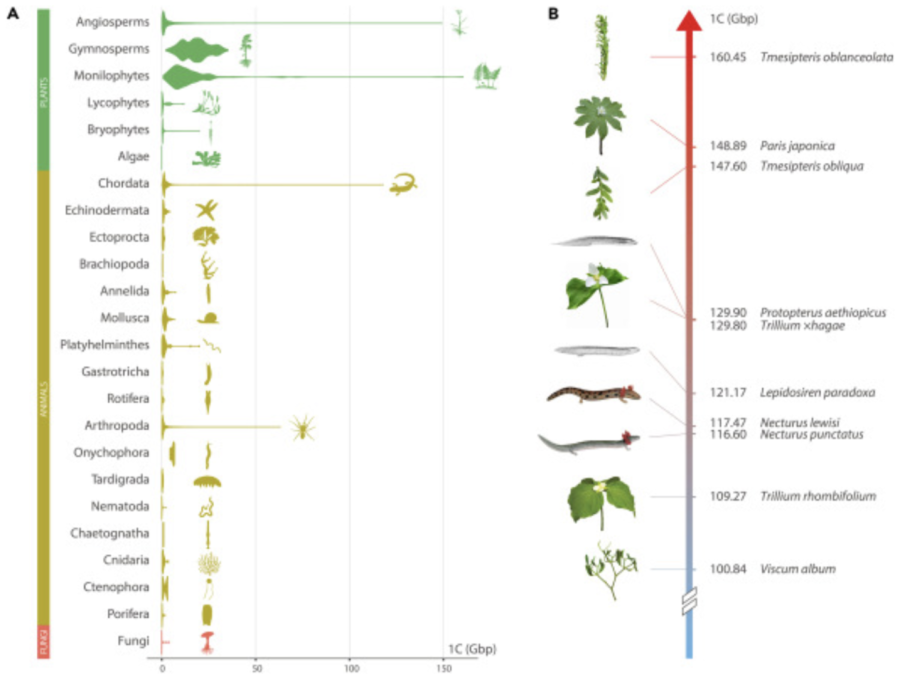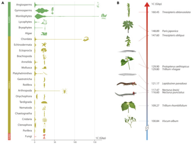Avec 160 milliards de paires de bases, Tmesipteris oblanceolata, une petite fougère de 15 cm remporte le titre de plus long génome d'un organisme eucaryote. La majorité de ce génome ne code pour aucune protéine. 05/24