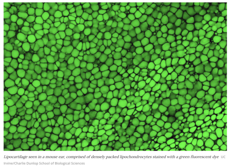 Biologists have made a groundbreaking discovery of a new skeletal tissue known as "lipocartilage" offering immense potential for regenerative medicine and tissue engineering. The lipocartilage found in the ears, nose and throat of mammals is composed of fat-filled cells called lipochondrocytes. The suffix "lipo" refers to lipids meaning fats and the cells storing them, called adipocytes. The term "chondrocytes" refers to the cells producing the cartilage. Lipochondrocytes produce the extracellular matrix, and thus provide super-stable internal support for the cells to develop. This matrix gives to the tissue all the biomechanical properties, namely its flexibility and strength. It makes the lipocartilage an ideal candidate for future treatments of facial defects, birth injuries and cartilage-related conditions like osteoarthritis, rhumatoid arthritis and lupus. Currently, cartilage reconstruction often requires harvesting tissue from the patient's rib, a painful and invasive procedure. In the future, patient-specific lipochondrocytes could be derived from stem cells, purified and used to manufacture living cartilage tailored to individual needs. With the help of 3D printing, these engineered tissues could be shaped to fit precisely. 01/25