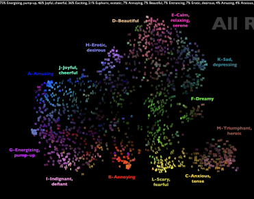 Des scientifiques de l'UC Berkeley ont étudié les réponses émotionnelles de plus de 2500 personnes vivant aux Etats-Unis et en Chine à travers des milliers de musiques incluant différents genres comme le rock, le folk, le jazz, la musique classique ou encore le métal. Ils ont établi une carte audio interactive à partir de laquelle les utilisateurs peuvent écouter différentes musiques et voir si leurs émotions correspondent à celles identifiées dans l'étude.