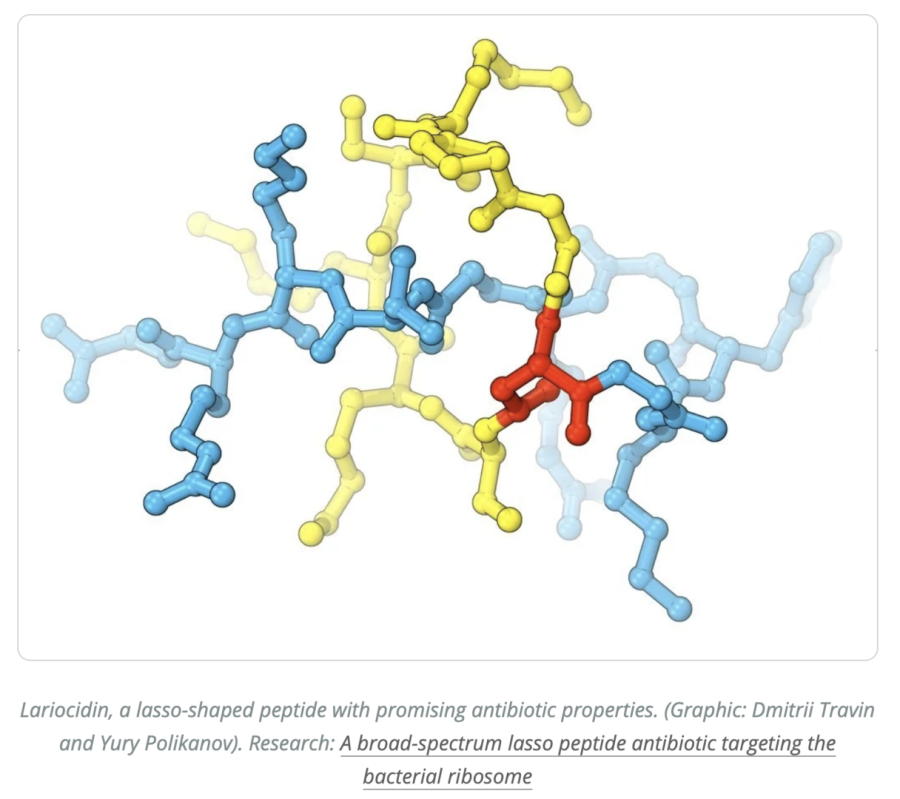 Researchers have discovered a powerful candidate antibiotic that can kill a broad range of bacteria, including those resistant to existing antibiotics. This antibiotic called lariocidin binds to a unique site in the small ribosomal subunit of bacteria which is clearly distinct from the sites of action of existing antibiotics that target the small ribosomal subunit. This unique binding site enabled lariocidin to circumvent the defense mechanisms that bacteria have evolved to resist other drugs. 03/25